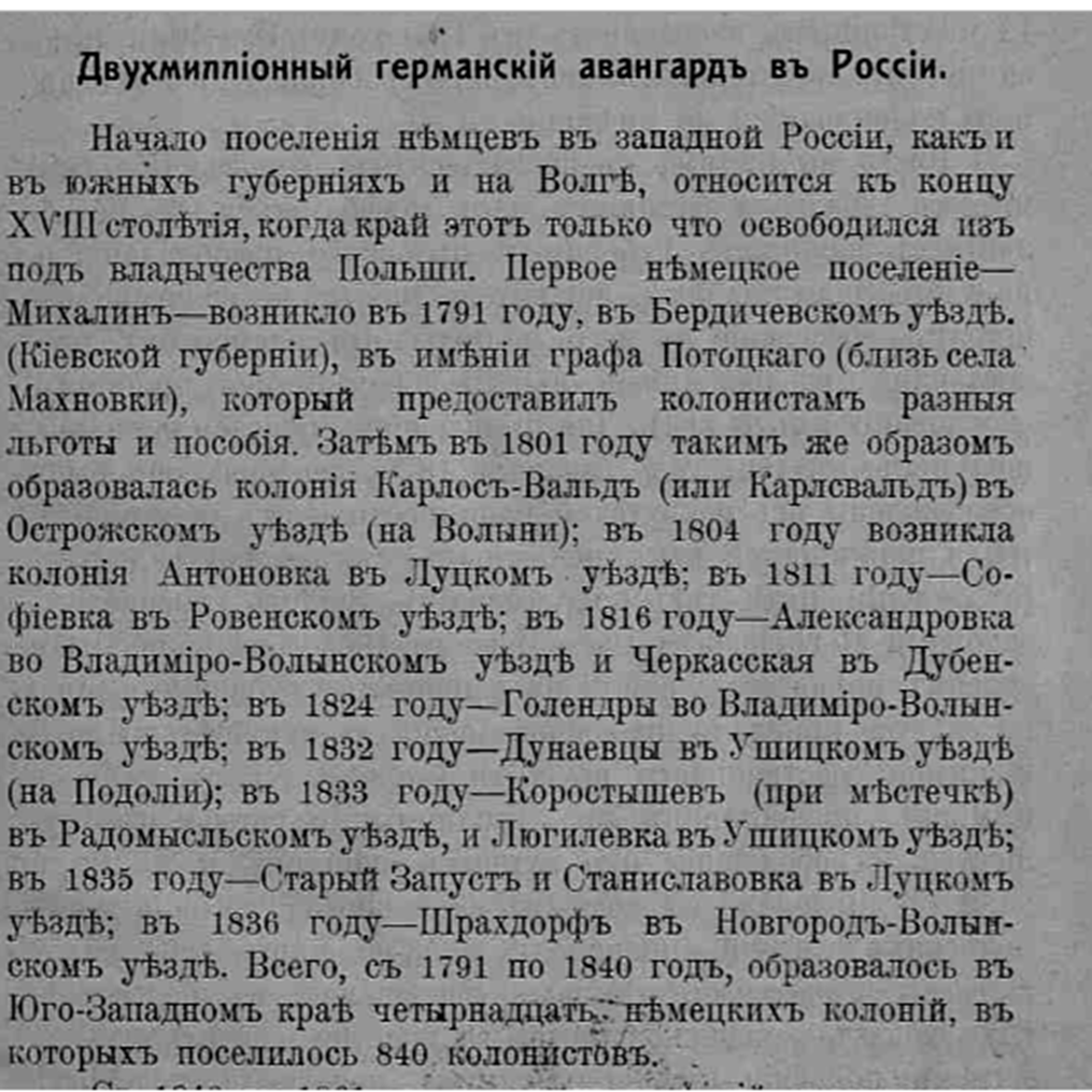 Сразу спешу успокоить бдительных граждан (пост же публичный): НЕТ в этой статье состава на статью, пардон за тавтологию, даже не пытайтесь его отыскать. НЕТ тут изма, НЕТ тут разжигания и даже слов «ценный специалист» НЕТ. Зато тут есть подробное и подтвержденное источниками той же эпохи описание ситуации с постепенным распространением немецких колонистов на западных рубежах Российской империи в интересах Германии и упомянута реализация сценария оккупации с опорой на немецкое население. Если у кого-то после прочтения материала о событиях более чем двухсотлетней давности возникнут некие мысли по поводу современности, то тут уж извините. Думать запретить людям все равно не выйдет, нет пока для этого технологической базы, надеюсь, что в обозримом будущем и не появится.