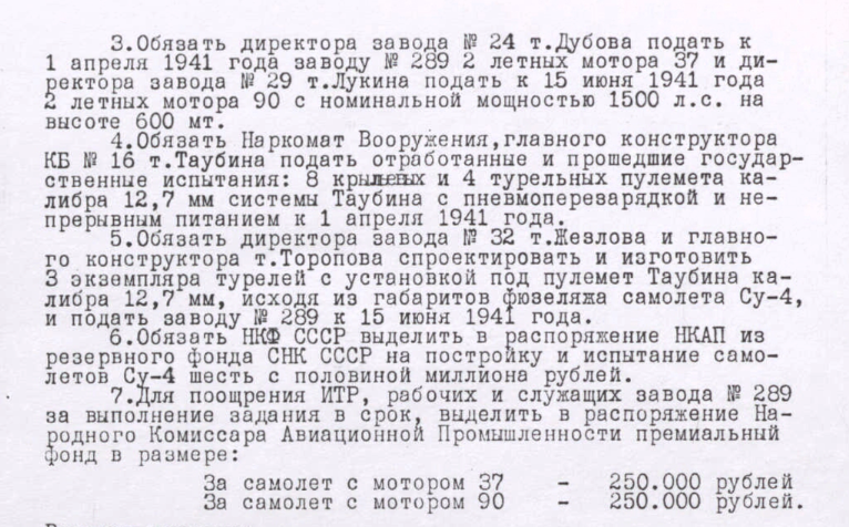 Постановление Политбюро ЦК ВКП (б) «Об одномоторном бомбардировщике Су-4». Дата: 25 января 1941 г.