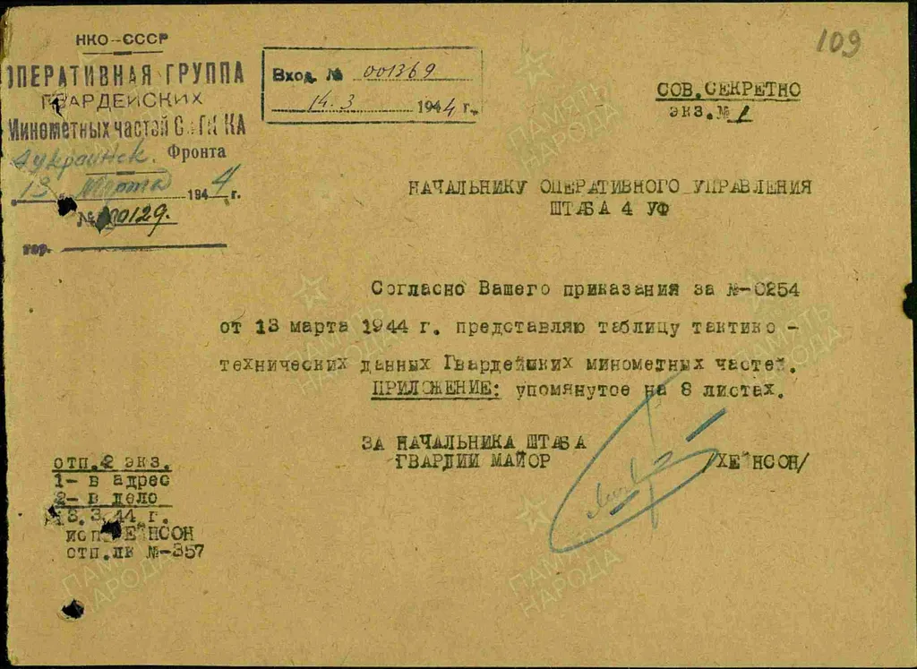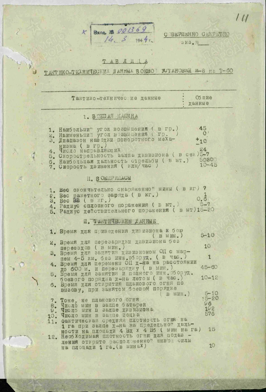 Ниже документ 1944 года, в котором приказано монтировать М-8 на автомобили «Шевроле». Все-таки танки Т-60 не выпускались уже давно, так что имеющиеся шасси, скорее всего, были близки к полной выработке своего ресурса.