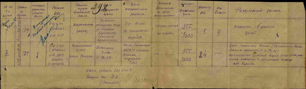 Выписка из журнала залпов РС кочующими установками М-8 на Т-60 326 гв. оминдн