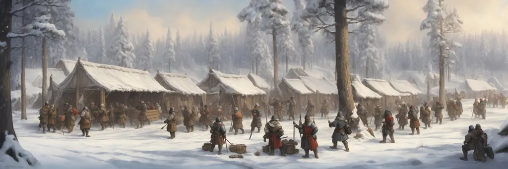 Недалеко слышен звон точильных камней и наковальни, слышны тренировки на мечах, мужской и детский смех. Пернатый пролетел сквозь деревья, мимо охотников, которые собирают снаряжение и садится на руку хозяину.