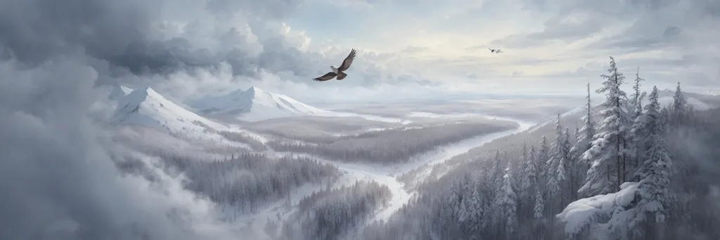 Морозные снежные оковы казалось вот-вот прижмут раненого зверя к мёрзлой земле. Шаг, ещё один, сохатый пал, раздался рёв. Пернатый спланировал и уселся на него. Тёмный Сох обессиленно посмотрел на незваного гостя. Беркут осторожно промакнул в ране лося свои перья, затем перебрался на рога и несколько раз стукнул по ним клювом. Тот будто понял, что пернатый здесь не просто так и утвердительно моргнул в ответ. В одночасье затишье сменилось сильной бурей и снежный занавес скрыл всё вокруг.