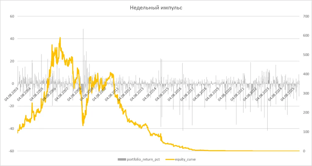 А вот недельный импульс в итоге полностью разрушил капитал в ноль.