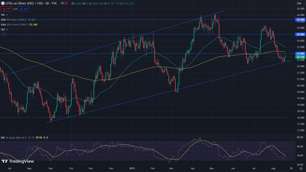 Серебро на текущий момент выглядит сильнее золота, так как его котировки пока подтверждают восходящую динамику. Золото же вышло из растущей тенденции и пробивает 200-дневную скользящую среднюю вниз.