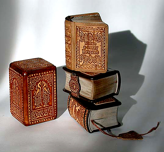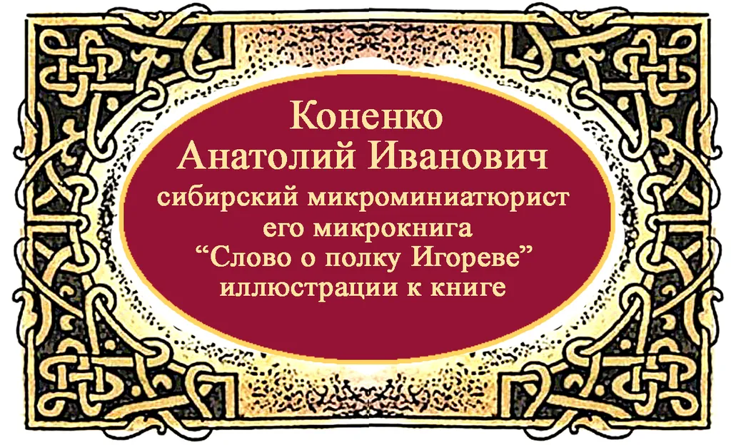 Подбирая иллюстративный материал к публикации «Мотивы кельтских, скандинавских, славянских узоров и орнаментальной вязи и различных их интерпретаций,» случайно набрёл на иллюстрацию А. И. Коненко к его микрокниге «Слово о полку Игореве». Иллюстрация скачиваться не хотела, зашёл на сайт и вот тут то очень подробно познакомился с творчеством Анатолия Ивановича. творчество его очень многогранно и скорее всего потому что он худграфовец. Худграфовцы отличаются от выпускников специализированных художественных вузов своим отношением к различным материалам и технике работы с ними. Анатолий Иванович молодец, что выбрал микроминитюаризацию основным направлением всего своего творчества и это у него великолепно получилось.
