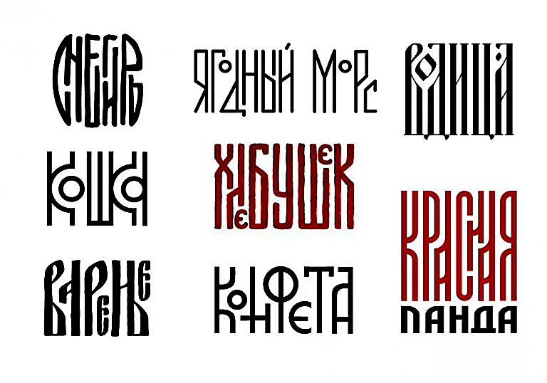 10. Подвешенные буквы, т. е. буква приобретала дополнительные элементы, максимально заполняя окружающее ее пространство.