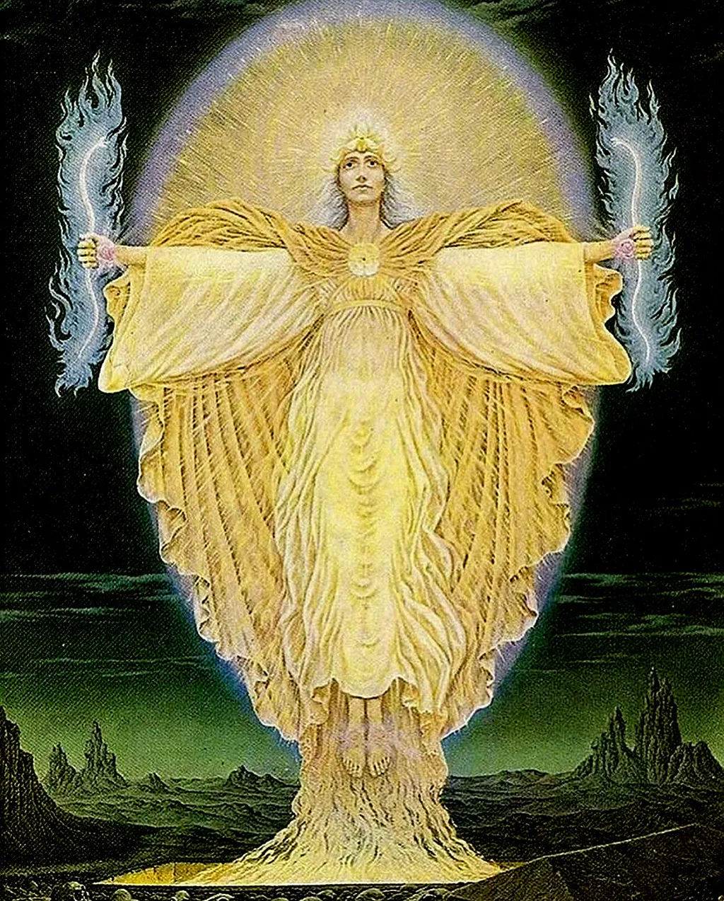 Сын восстает из могилы диалектической природы, облаченный в Золотые Брачные одежды новой Души. Он — это новый Меркурий, Трижды Величайший Гермес. Его голова украшена чудесным золотым цветком новой мыслительной способности. В его руках — огненные змеи обновленного спинального флюида в их позитивном и негативном аспектах.