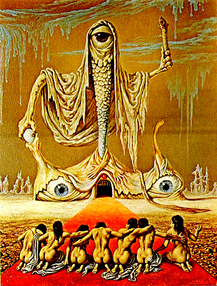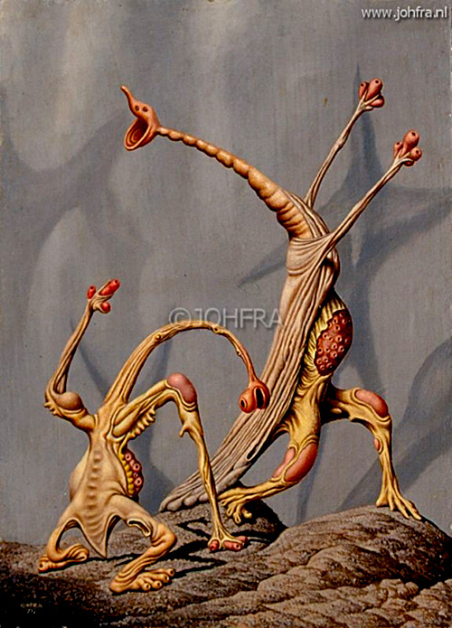 Весной утра 1957 года он начал развивать запутанные органические пейзажи, которые появляются во многих его более поздних картинах. В 1967 году он выпустил серию из четырех рисунков на тему шизофрении. Возможно, они показывают какое-то влияние от символического языка Иеронима Босха и Брейгеля. Эти рисунки ознаменовали отход от его прежнего сюрреалистического стиля к более символичному, поучительному и дидакционному. Это, возможно, уже было компонентом его работы, как видно из символического Сына Змеей 1951 года, но теперь эта изобразительная форма стала более центральной, и его сюрреалистический стиль несколько уменьшается в важности для него.