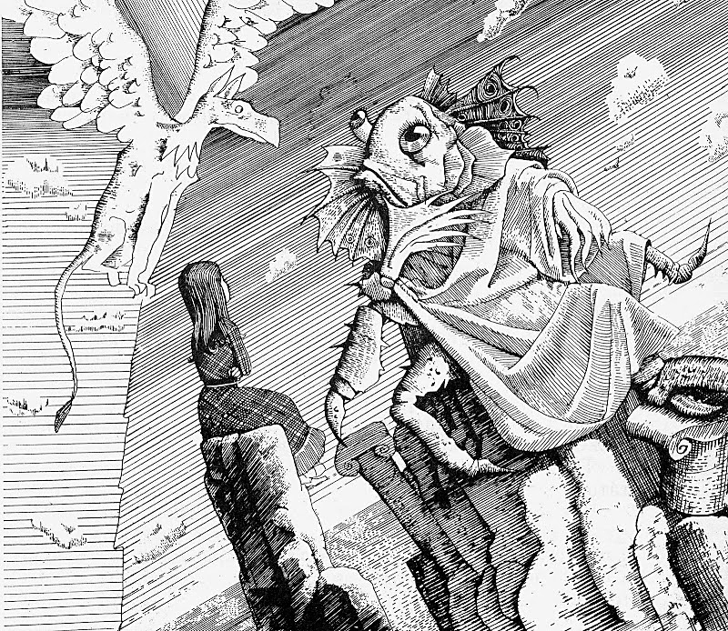 Кэрролл, как известно, написал свою книгу о маленькой десятилетней соседке. Менее известно, что первый иллюстратор «Алисы» сэр Тэнниэл, в свою очередь, нарисовал свою соседку — тоже десятилетнюю девочку. Я, не нарушая устоявшейся традиции, нарисовал свою соседку Леночку П.