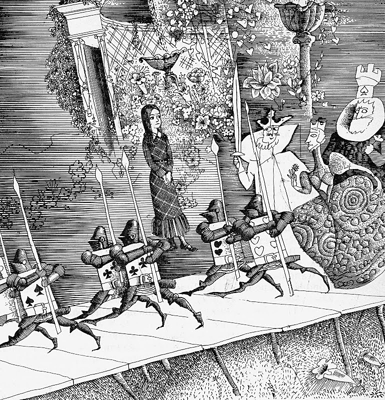 Книги о приключениях Алисы я иллюстрировал трижды. Лет десять назад это были «Приключения Алисы в Стране чудес» в переводе Б. Заходера, потом «Алиса в Зазеркалье» в переводе В. Орла. Сейчас я делаю «Алису» опять в переводе В. Орла — книгу цветную.