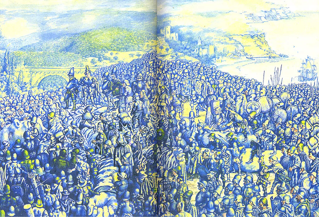 Зачастую иллюстратора как художественную личность не устраивает амплуа, которое по-немецки зовется «Гебраухс» (Gebrauchs — прикладное). И художник, как, например, Д. Бисти, дал, на мой взгляд, свой комментарий — ироническое освещение «Песни о Роланде».