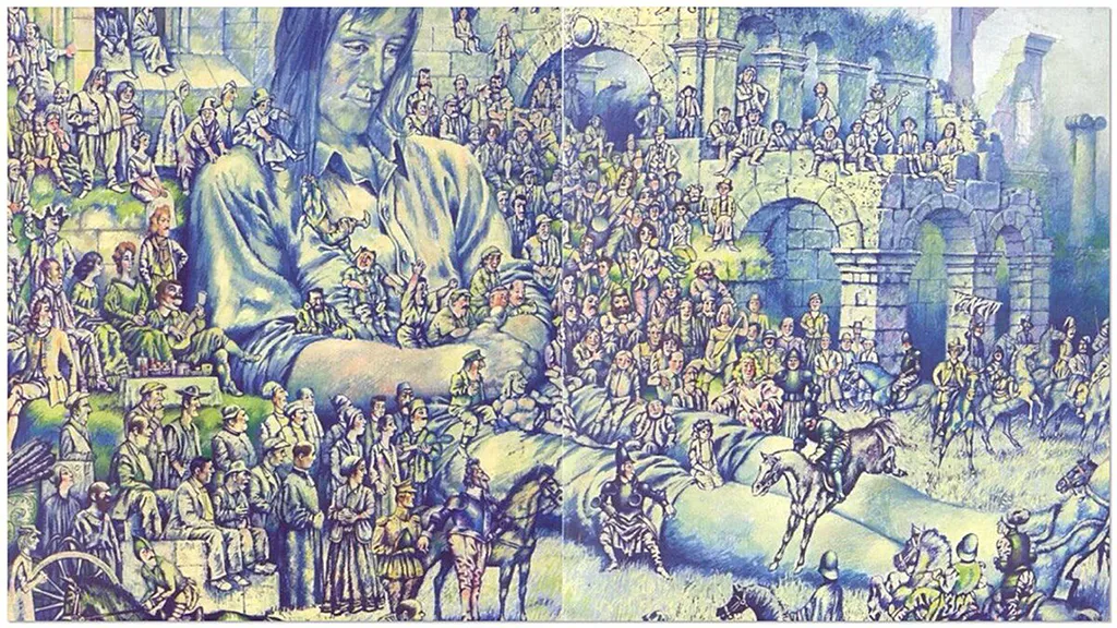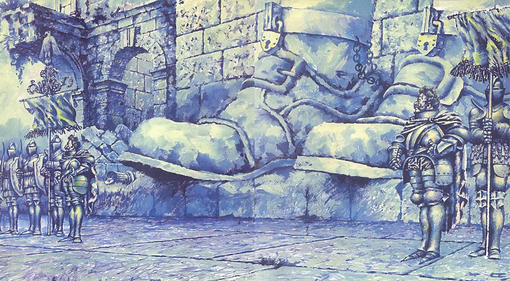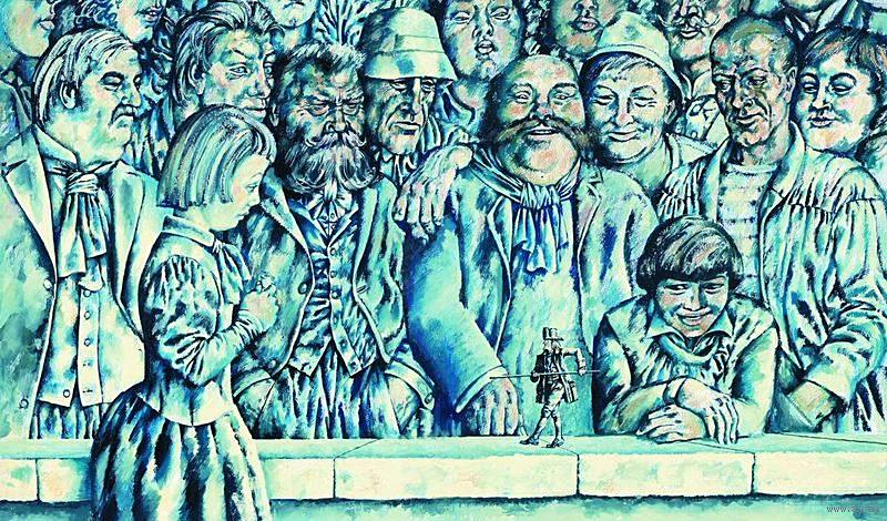 В первом рисунке, на котором Гулливер лежит связанный, я засыпал его огромным количеством лилипутиков, подобно комарам, облепившим пенек, — и его почти и не видно под ними — маленькие человечки поглотили большого. И рисунок, я думаю, стал полнее. Лилипутиков много — их сотни, и ни одного я не имел права сделать статистом, или, как мне советовали — куколкой. На Гулливере копошился хорошо отлаженный государственный механизм, где каждый его элемент был автономной единицей.