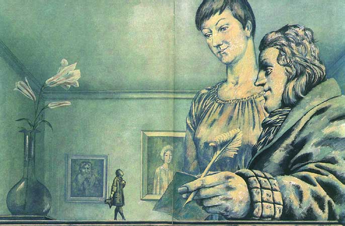 Я считаю, что основой основ профессии иллюстратора книги является способность острейшим образом чувствовать специфику данного текста, его темп и тембр. Книги бывают чисто фигуративные, книги действий, книги состояния, книги — роман души, — в разнообразных комбинациях этих и других качеств.