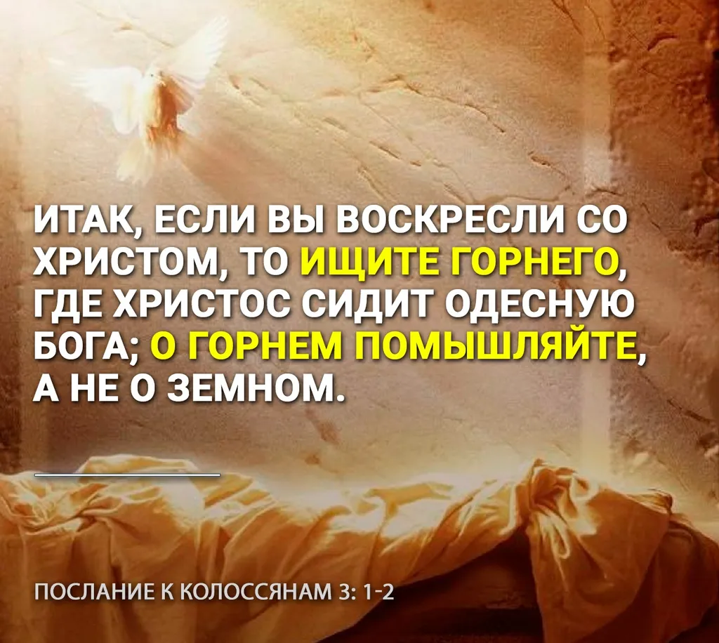 Колоссяне были воскрешены с Христом в крещении (Кол. 3:1; 2:12). Однако сам факт воскресения с Ним не обеспечивает немедленной зрелости. Требуются терпеливые усилия развить в себе христианские качества. Для этого необходимо сосредоточиться на небесном отношении к жизни, которое было у Иисуса. Новорожденные христиане, чья новая жизнь начинается с духовного рождения во время крещения (Ин. 3:3-5), подобны младенцам. Для духовного развития им требуется молоко Слова Божьего (1 Пет. 2:2).