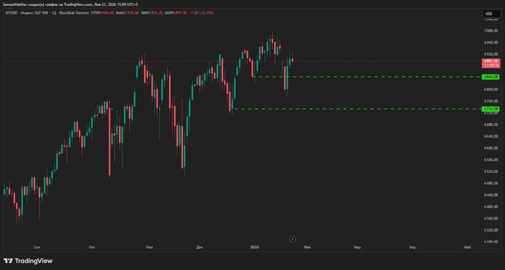 На всех топовых индексах рисуют ложный пробой ключевого минимума от 2 янв. 26., и на фоне указанного выше позитива, а так же отката в риторике по наложению тарифов на ЕС, у нас происходит накат покупок.