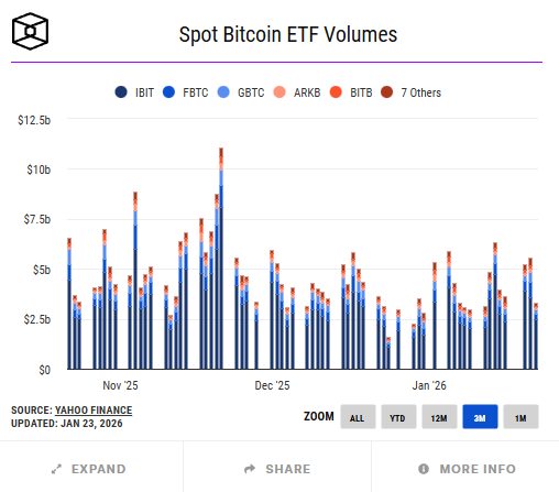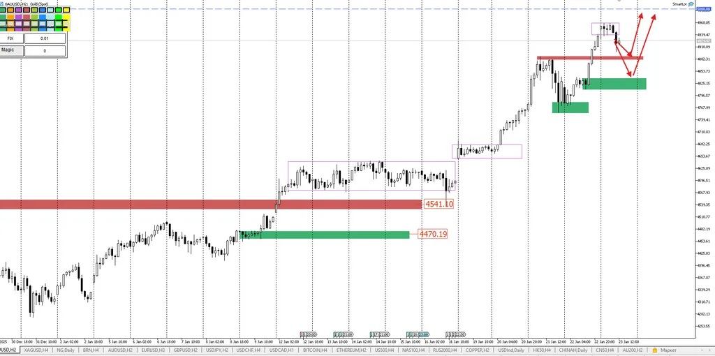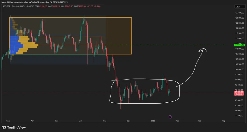 Там бьются все рекорды по флоу денег в акции и ETF, и это отражается в котировках неизбежно. Я придерживаюсь лонговых сценариев, но с некоторой опаской. Сначала опаска была по поводу Японии, и репатриации капитала и вот это вот всё, что способно выключить свет в комнате с рисковой корзиной. Сейчас мы на пороге заседания ФРС США, оно пройдёт 28 янв. 26, и по нему ожидания следующие: FED ставку оставит, и рынок это занёс в цену, я не думаю, что будет какая-то фиксация прибыли, а вот усиление тренда вполне возможно. Но всё будет зависеть от риторики — сейчас в фокусе то, что будет говорить Пауэлл, а не циферки по ставке.