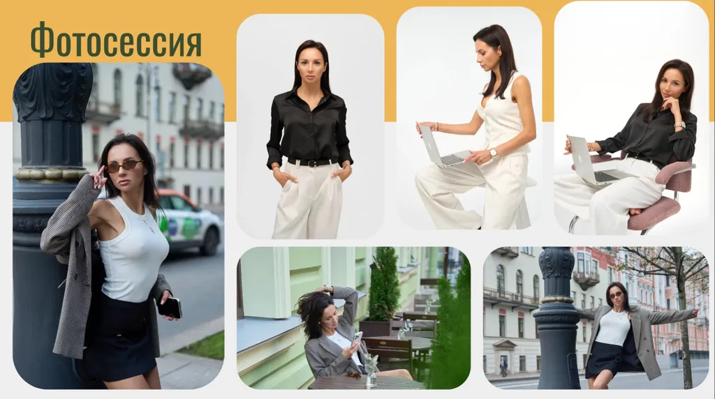 Была организована профессиональная съемка, чтобы получить портфолио «живых» и атмосферных кадров. Эти фотографии стали основным визуальным активом, работающим на формирование эмоциональной связи и восприятия Ольги как привлекательного и человечного эксперта.