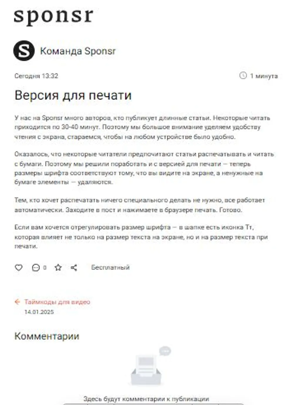 У нас на Sponsr много авторов, кто публикует длинные статьи. Некоторые читать приходится по 30-40 минут. Поэтому мы большое внимание уделяем удобству чтения с экрана, стараемся, чтобы на любом устройстве было удобно.