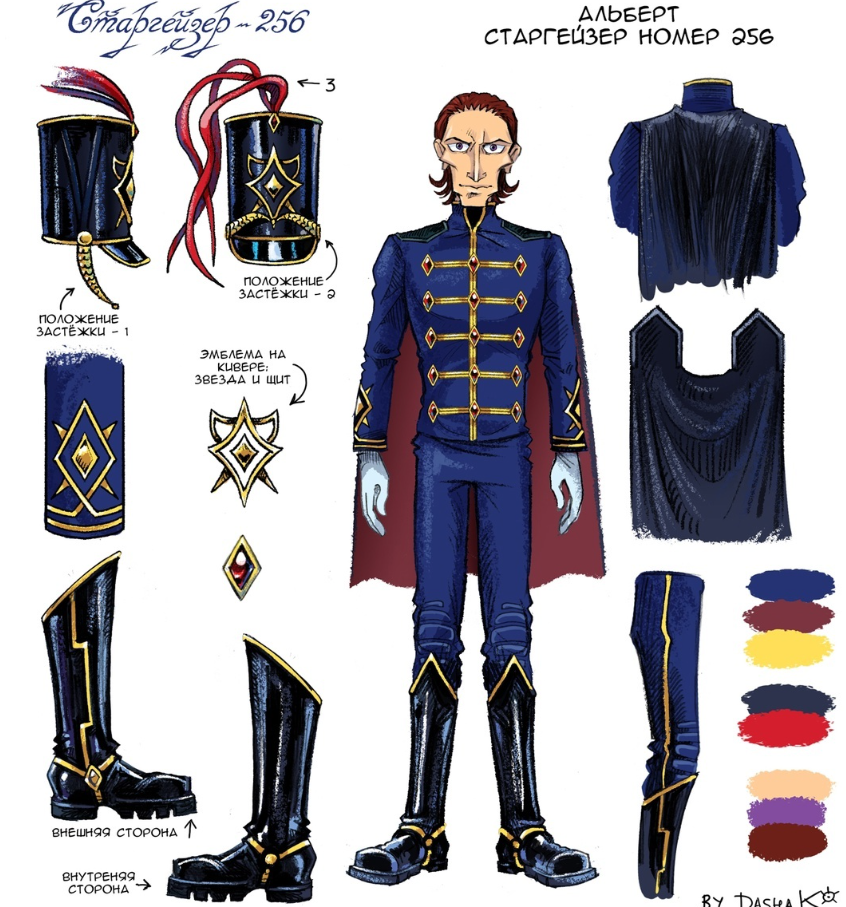 К середине июля 22го я наконец-то придумала имя персонажу. Альберт. Теперь, временное обозначение «космо-гусар» можно было отбросить (хотя иногда я его использую, потому что забавно). Теперь у меня было и имя, и профессия, и мир, в котором мог существовать персонаж. Для полного стартер-пака новой истории не хватало только названия (потому что уже требовался хештег для организации постов на разных площадках). Оно думалось долго. Мне хотелось что-то связанное со звёздами, но слово «Звездочёт» казалось пустоватым, простым, слишком конкретным. В тоже время, у этого слова на английском «Stargazer» есть два значения — «звездочёт» и «мечтатель». Тут и конкретика, и романтика, два в одном. Отличное попадание для Альберта. Обсуждая эту тему с подписчиками (платной подписки), было решено сделать написание «Старгейзер», по-русски. Ну а приставка 256, она же некий порядковый номер, появилась тоже сразу, просто, чтобы разнообразить само слово «Старгейзер» и чтобы оно стало более уникальным для хештегов, а не выводило на другие, более общие темы. Почему «256» тоже сложно вспомнить, похоже на какой-то рандом? Вероятно, так и было. Так что тайны в номере никакой нет.