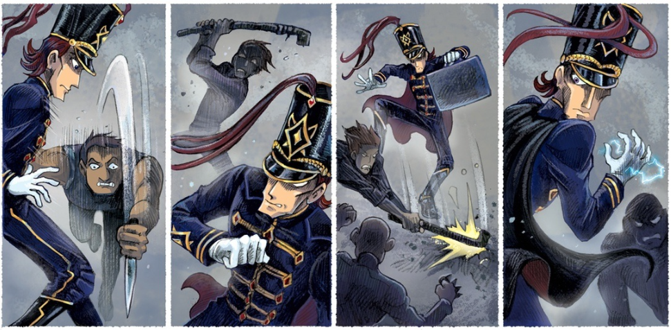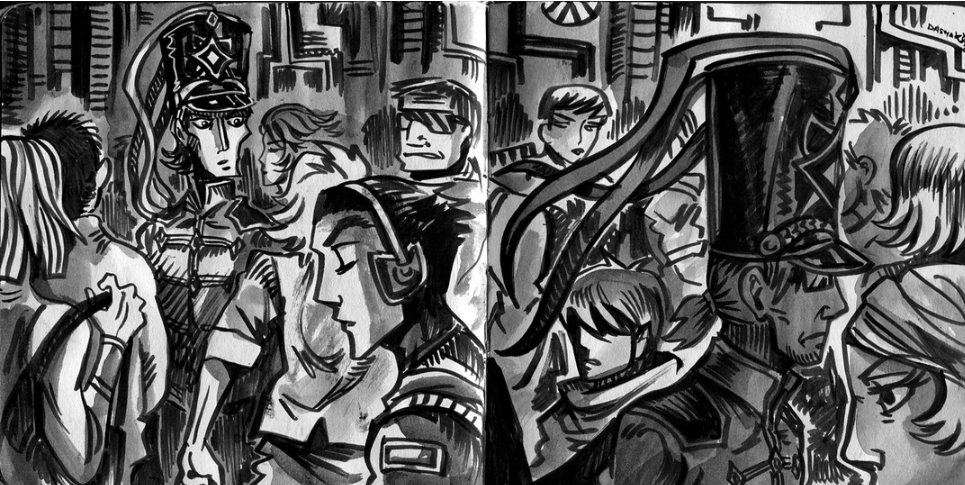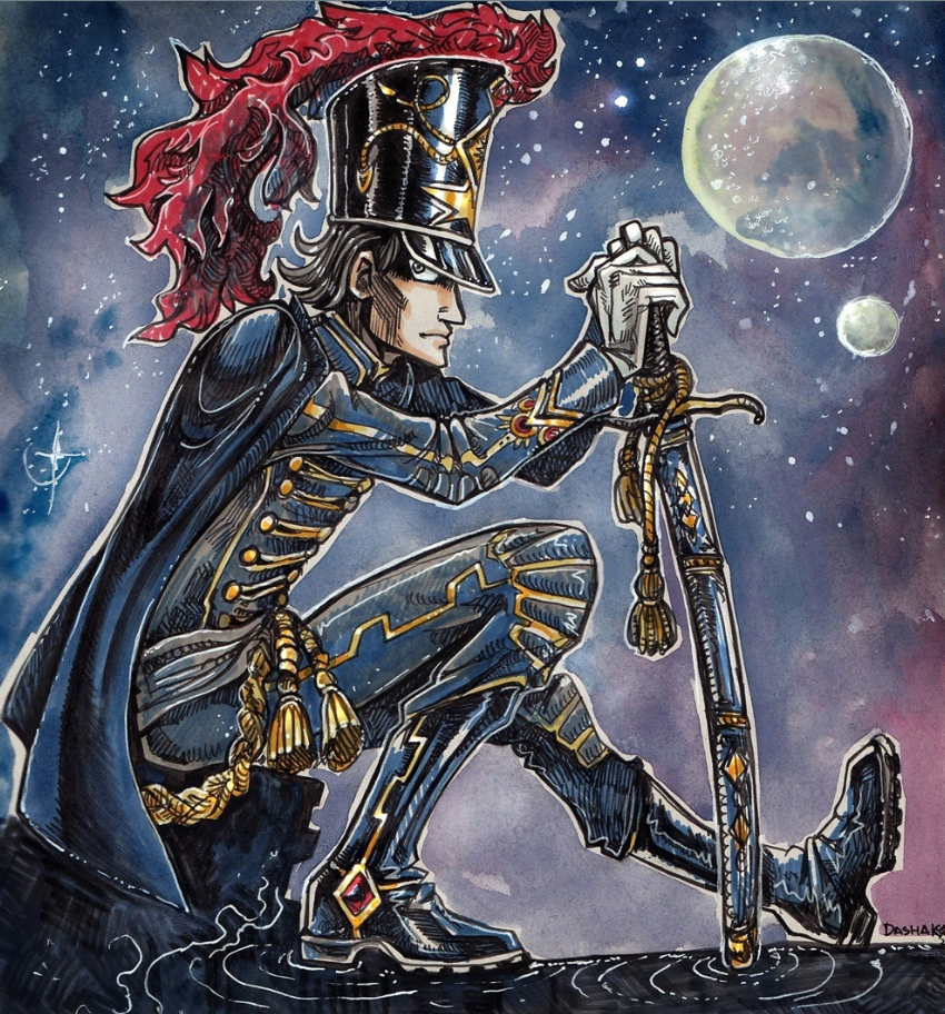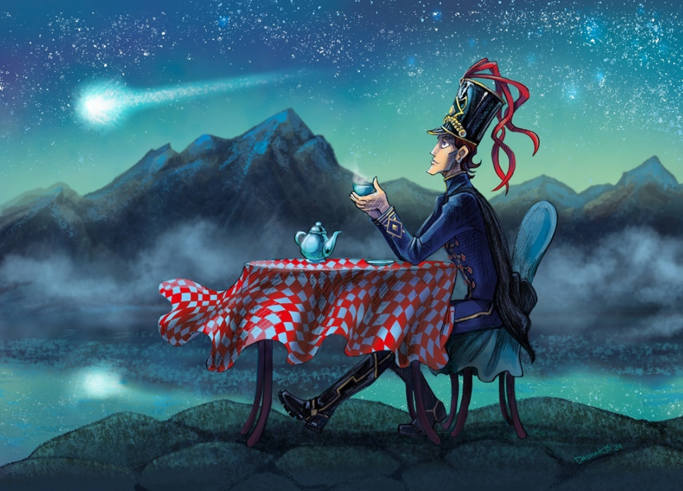 Начало. Да, я бы хотела охватить всё-всё, что было так или иначе связано с этим проектом, потому что это важно для меня (и моей дырявой памяти). Итак, август 2021го года. Пожалуй, самым известным фактом о проекте является то, что он взял своё начало с одного арта в скетчбуке. Это был именно, что независимый арт — «космический мужчина» в каком-то сай-фай сеттинге. Почти сразу появилось название арта как «космогусар». Как он придумался уже сложно вспомнить, просто один из порывов нарисовать персонажа в форме, с детализацией, мистикой и вообще — совместить узнаваемый образ (гусара) с фантастическим миром (фон, + детали костюма доработаны в космо-тематике). Форма, которой я вдохновлялась для арта была форма 4-го мариупольского гусарского полка, Русской императорской армии, XIX века. В общем, сгенерировала что-то такое в мозгу и выплеснула на странице скетчбука. Результат мне понравился. Как ни странно, арт быстро набрал популярность. В ВК его даже отметили «огоньком». Но круче всего было на Deviant Art’e, там он попал в раздел Deily Deviation, что принесло много фидбека со всего мира. Не знаю, как часто художники попадают в Deily, но у меня это случалось только дважды. Впрочем, это всё равно было временным успехом, бум прошёл, а я уже вовсю занималась другими делами, как обычно. Мыслей о том, чтобы продлить жизнь этому персонажу не было, но я сделала тираж открыток с этим артом к комикс-маркету в Москве в октябре. И на этом идеи у меня закончились.