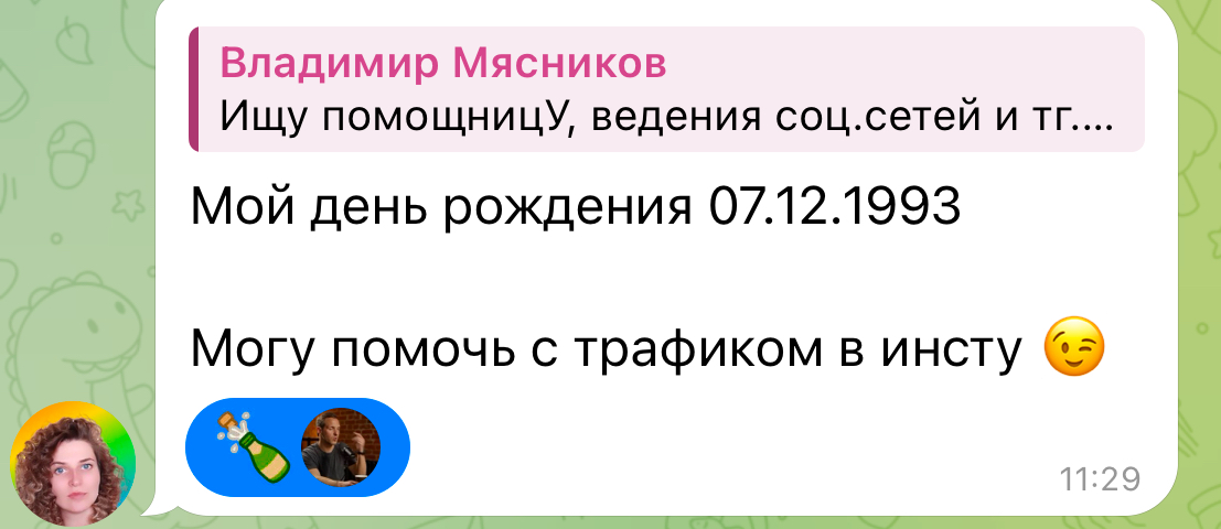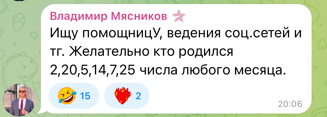 Сегодня наткнулся на забавный кейс из бизнес-группы в телеграмм: нумеролог ищет себе помощницу для ведения соцсетей.