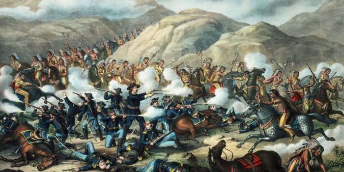 Индейцы преградили путь колонне Джорджа Крука и 17 июня 1876 года после битвы при Роузбад заставили ее повернуть назад. В авангарде колонны войск Альфреда Терри шел 7-й кавалерийский полк под командованием Джорджа Кастера, «прославившиеся» резней на реке Уошите. 25 июня он потерял 267 человек убитыми, в том числе и командира, после разгрома у реки Литтл-Бигхорн. Это стало крупнейшим поражением армии США в войнах с индейцами со времени уничтожения войска генерала Сент-Клэра в 1791 году. Причем, если до этого индейцы как правило одерживали победы при нападении в удобном для них месте или из-за засады, то сейчас полковник сам напал на них, неправильно оценив их численность и постоянно деля свои силы, чтобы окружить индейцев. Кроме того, индейцы впервые использовали смертников — индейцы Маленький Вихрь, Порезанный Живот, Сжатая Рука и Шумно Идущий демонстративно атаковали американцев, вызвав весь огонь на себя, а их соплеменники уничтожили солдат до того как те успели перезарядить ружья.
