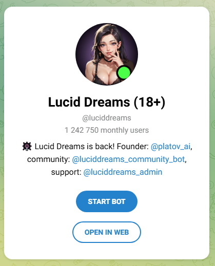 1. Lucid Dreams (18+) — лучший приват интим через Telegram и браузер