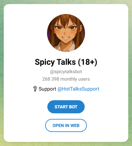 2. Spicy Talks (18+) — быстрый интим чат тг без лишних формальностей