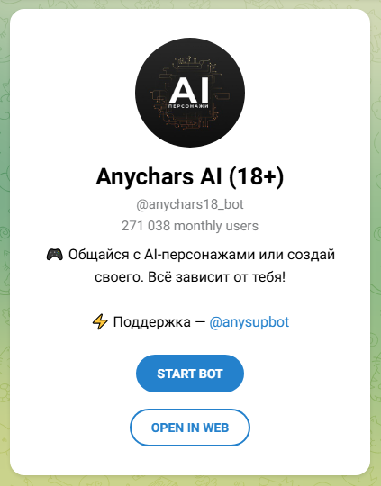 Кому подходит: тем, кто ищет разнообразие в интимном общении онлайн, любит ролевые сценарии и хочет исследовать разные форматы — от нежного до откровенного — с разными персонажами.
