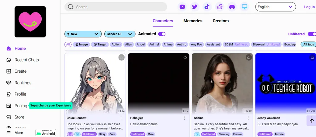 SpicyChat — это ролевые сценарии для взрослых с огромной коллекцией персонажей, у каждого из которых есть «глубокая память»: алгоритм адаптируется под конкретные сценарии интим общения, помнит детали и развивает нарратив. Это один из немногих настоящих intim chat сервисов без ограничений контента — что для ниши редкость. Хорошо подходит тем, кто хочет не просто переписки, а настоящей вербальной игры — с характером, напряжением, нарастанием. Девушки интим разных образов и характеров — от нежных до дерзких — доступны здесь сразу, без долгого поиска.