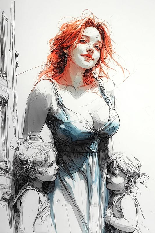 Теперь вся серия проиллюстрирована в едином стиле карандашной графики. Чёрно-белой. Исключение — рыжие. Они рыжие. Им можно.