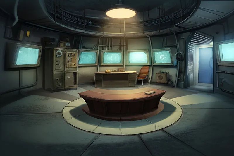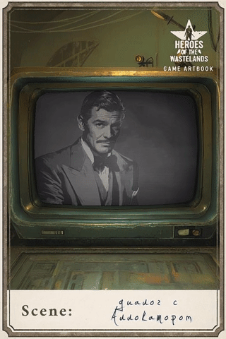 Качество изображения соответствует типичной телевизионной передаче, то есть чёрно-белое и не очень чёткое. Игровая условность, нюка-панковый антураж. Я сижу в кресле в кабинете Смотрителя, владельца кабинета нет. На экране мужчина в костюме, немного похожий на диктора из рекламного ролика про Аллокатор, и немного — на Mr. House, персонажа одной из частей франшизы.