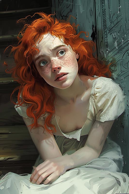 Она в ночной рубашке, к ноге жмётся её крошечная беловолосая эмосимбионтка, тоже в чём-то символическом и полупрозрачном. Очень секси обе, повезло Андрееву сынку.