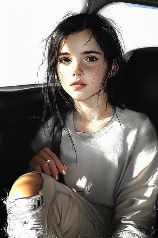 Я открыл дверь, вылез, откинул своё кресло вперёд и подал ей руку. Девочка, кряхтя, выкарабкалась, потирая рёбра.