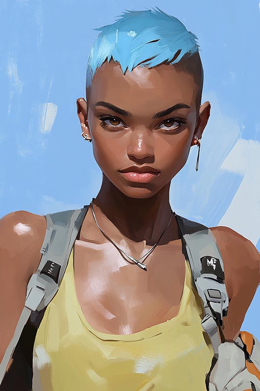 Джинсовые короткие шорты, высокие ботинки на стройных голых ногах, жёлтая маечка на тонких бретельках, которую красиво натягивают на груди лямки рюкзака.