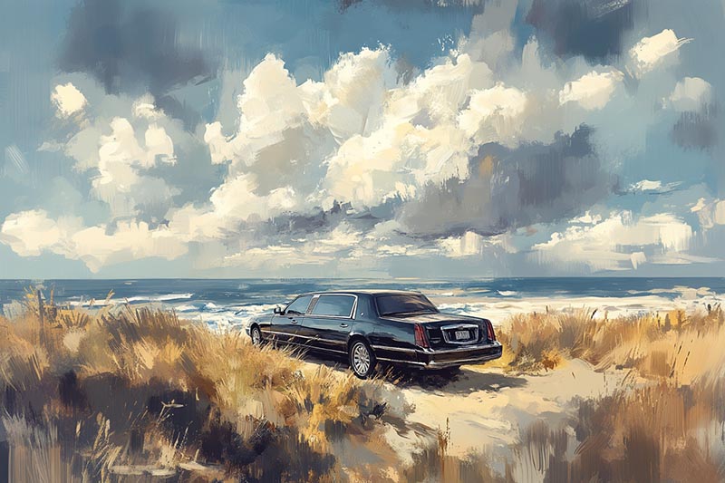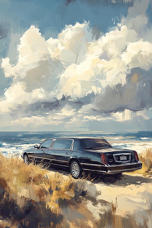 В этот момент из тёмной пыли и воздуха соткался, прокатился по берегу и остановился пафосный чёрный лимузин.