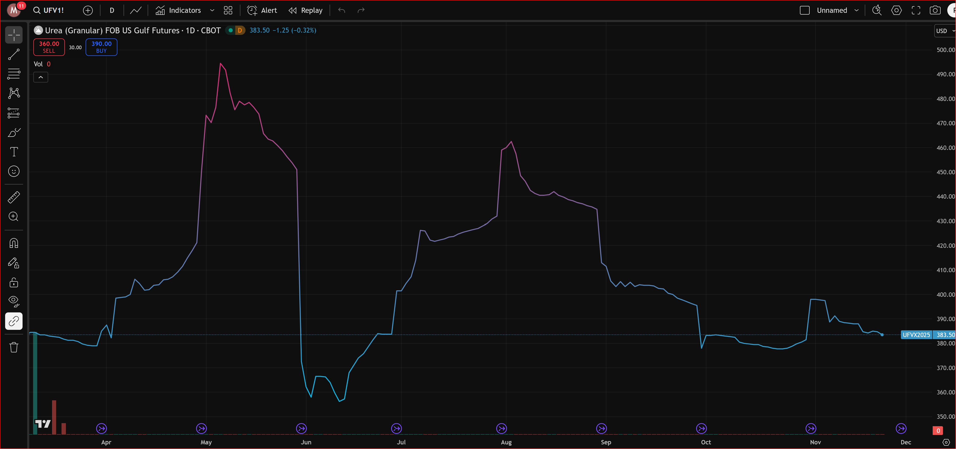 Urea (Granular) FOB US Gulf Overview — Мочевина — самая популярная форма твердого азотного удобрения. Снижение последнее время (см. график).