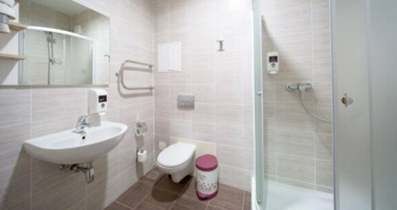 Есть номера с собственной ванной комнатой, они стоят, как правило дороже примерно на 1 тыс. руб., а есть с общей ванной комнатой в блоках на 2-3 номера. Сами ванные комнаты выглядят одинаково:
