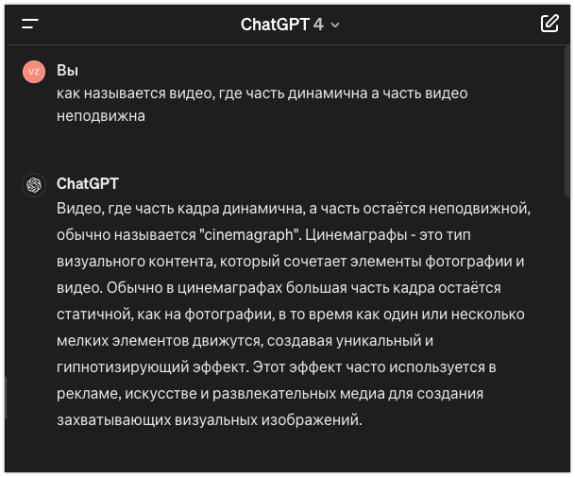 Например, однажды мне нужно было вспомнить, как называется программа для создания видео с определенным эффектом, при котором часть видео неподвижна, а другая часть — наоборот.
