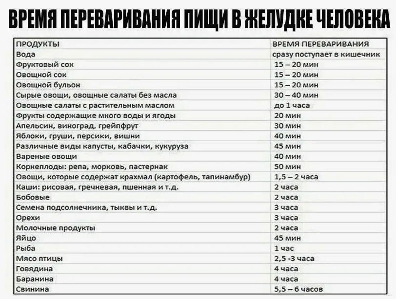 Немного про питание. Полноценный обед только один раз на Холмогорской развилке. В монастыре выпил чай с пряниками и морс. В остальном питался сухомяткой. Думал, что мне не хватит и придется заехать еще раз на Холмогорскую развилку, чтобы полноценно поесть, но решил этого не делать, так как большого желания кушать не было. И вот что я подумал. Мы иногда едим за 60 километров до финиша и берем мясо или рыбу, гарниры, чай, кофе, сдобу. Едем это расстояние часа три. Вопрос: а то, что мы съели, успеет дать нам нужную энергию? Приложу таблицу. Выходит, что лучше всего использовать соки, фрукты, овощи и, конечно, спортивное питание. Всё остальное начнет «работать» только после двух часов. А если учесть, что мы после приема пищи не ждем, когда она переварится, а выполняем энергозатратную работу, то и переваривание будет немного замедленней. Организму придется распределить свои внутренние ресурсы для поддержания мощности (педалирования) и на переваривание пищи.