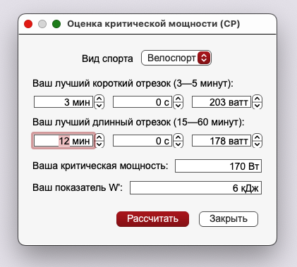 Тестирование критической мощности. CP и W'