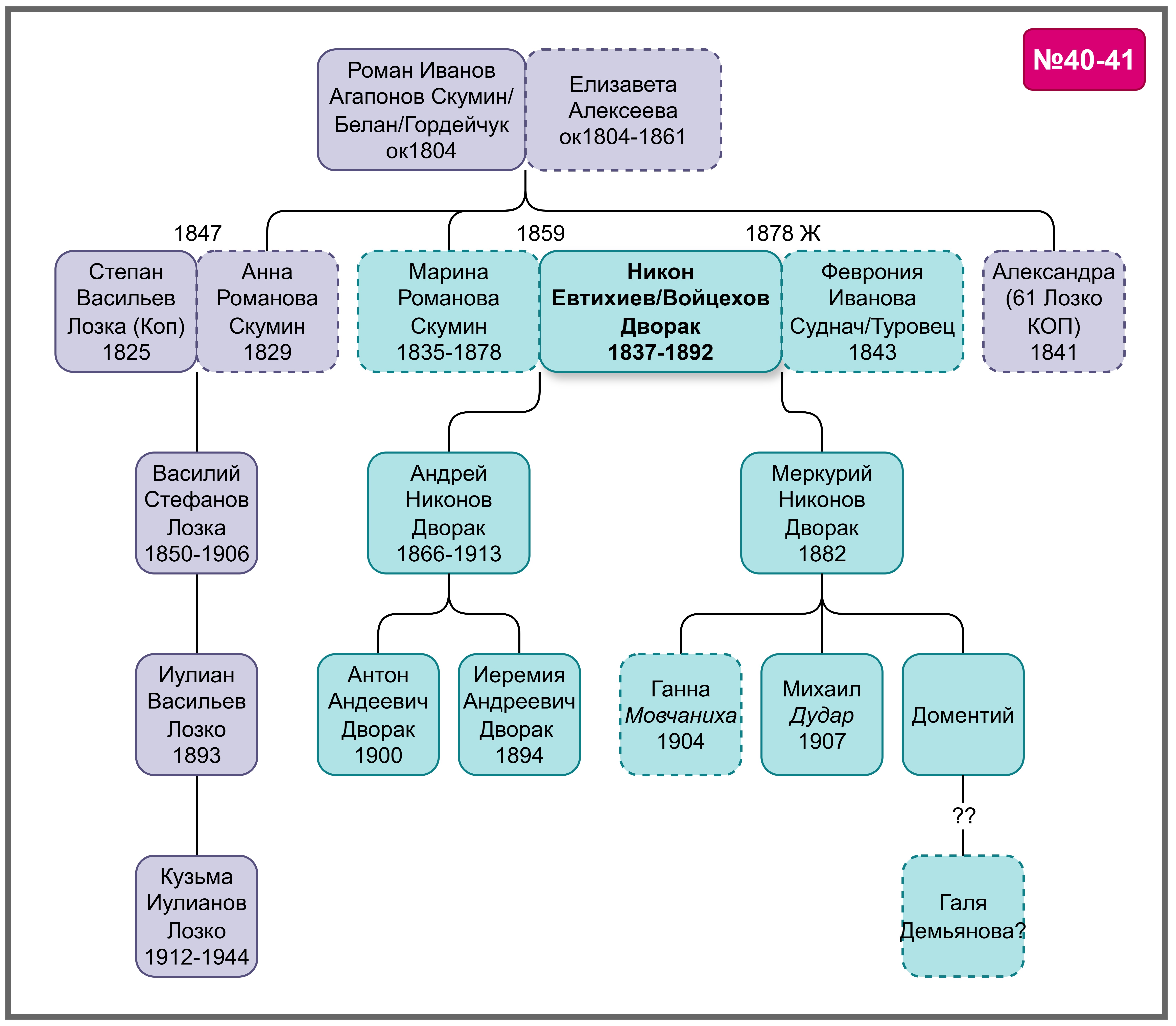 В 1912 году соседями Саввы Белана указаны два брата: Андрей и Меркурий Двораки. Братьями они были только по отцу, когда старший женился, младшему было всего 6 лет. Тем не менее оба остались на отцовском дворе. Правда, вотчиной эту землю можно назвать несколько условно. Дело в том, что двор был родной не для их отца, рожденного в соседней деревне, а для матери старшего из братьев. Здесь жили его дед и баба.