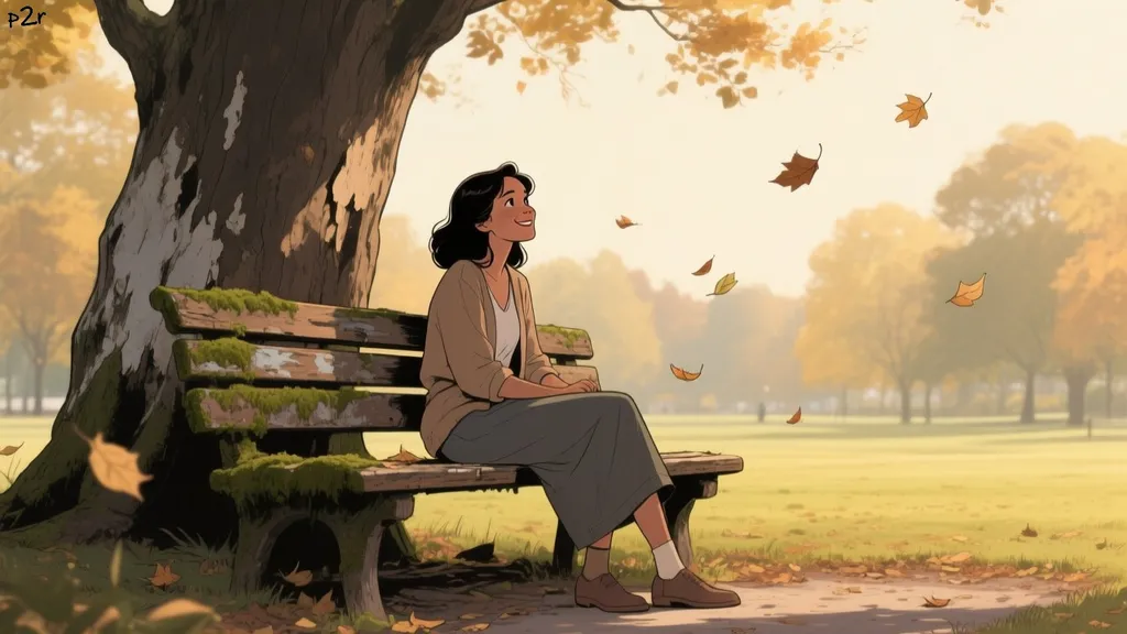 Я останавливаюсь у скамейки, уставшей от времени, местами поросшей мхом, сажусь и смотрю вдаль. Осенний парк окутывает меня своим спокойствием, шепчет мне тайны листьев и ветра. Улыбаюсь ему в ответ, ощущая, как внутри меня просыпается желание жить полной жизнью, ловить момент и наслаждаться каждым мгновением.