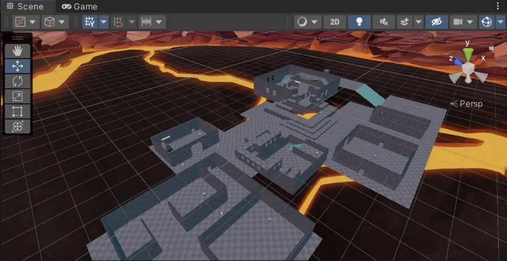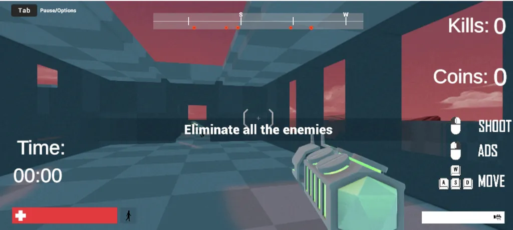Игра была разработана с использованием шаблона «FPS Micro-Game» игрового движка Unity [30]. Этот шаблон предназначен для обучения основам работы с Unity, а его модульная структура упростила внедрение базовых игровых функций и элементов HUD. Unity является одним из самых доступных игровых движков, что облегчило освоение необходимых навыков.