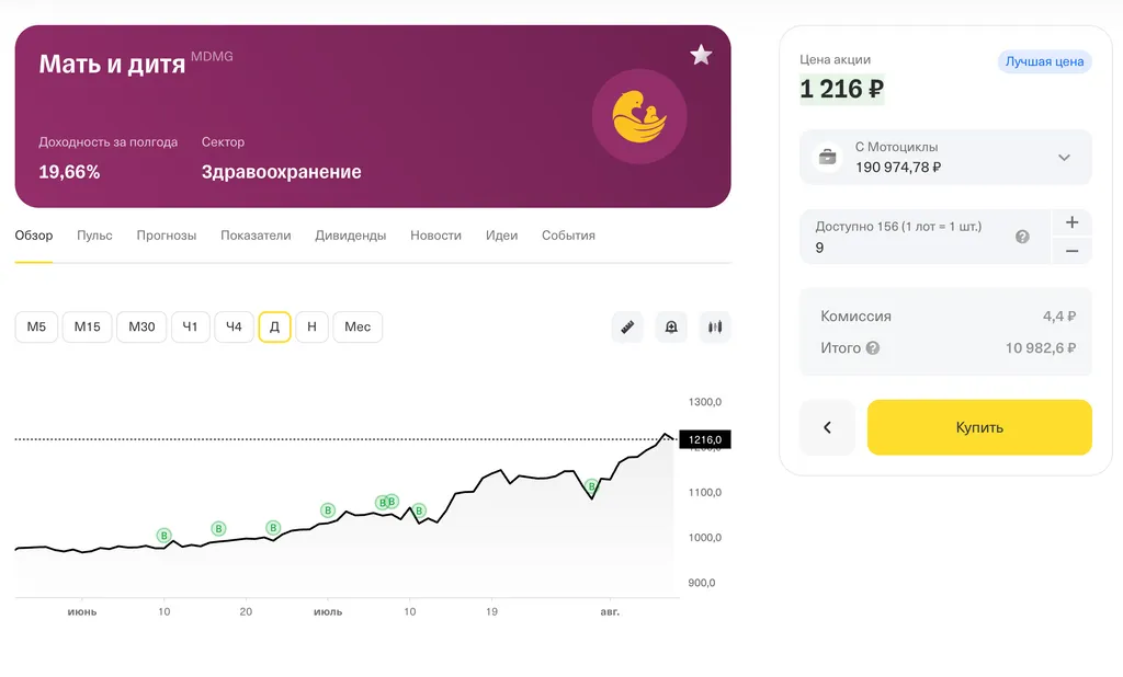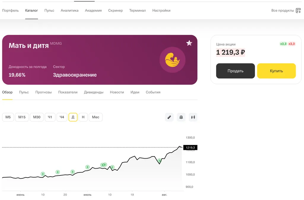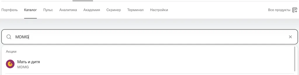 Рассмотрим на примере Мать и Дитя, тикер MDMG:
