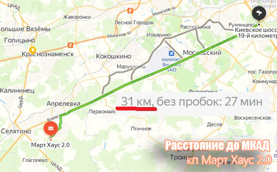Я же имел ввиду до МКАД. Март Хаус 2.0 расположен внутри ЦКАД на расстоянии 31 км. от МКАД.