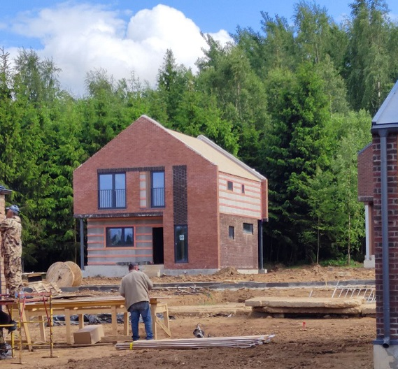 Строят по каркасной технологии из готовых, заводских «сэндвичей» от Австрийского производителя ТАМАК. Для тех, кто испытывает недоверие к этой технологии — построили несколько кирпичных домов, которые внешне ничем не отличаются от остальных.