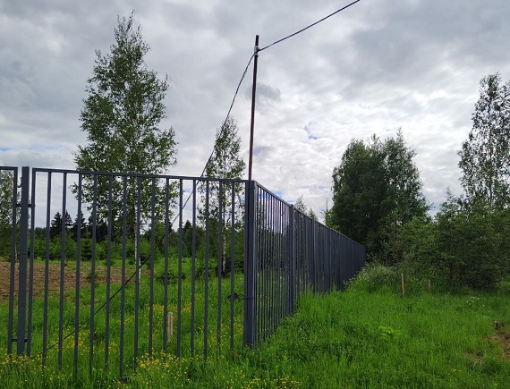 По периметру поселка уже стоит красивый забор.
