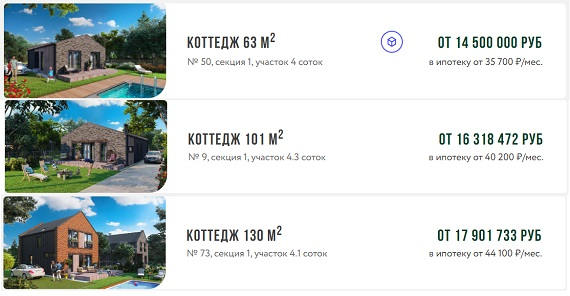 Площади домов от 63 до 167 квадратов.