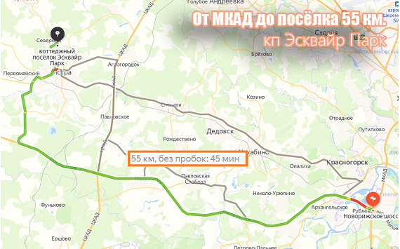 1. По расстоянию посёлок расположен не слишком далеко — 55 км от МКАД